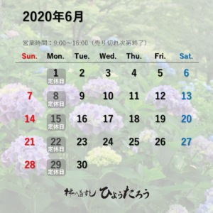 【営業日のお知らせ】2020年6月