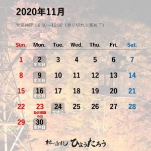 11月は通常通り月曜日が定休日となりますが、11月23日(月)が勤労感謝の日で祝日となるため営業致します。