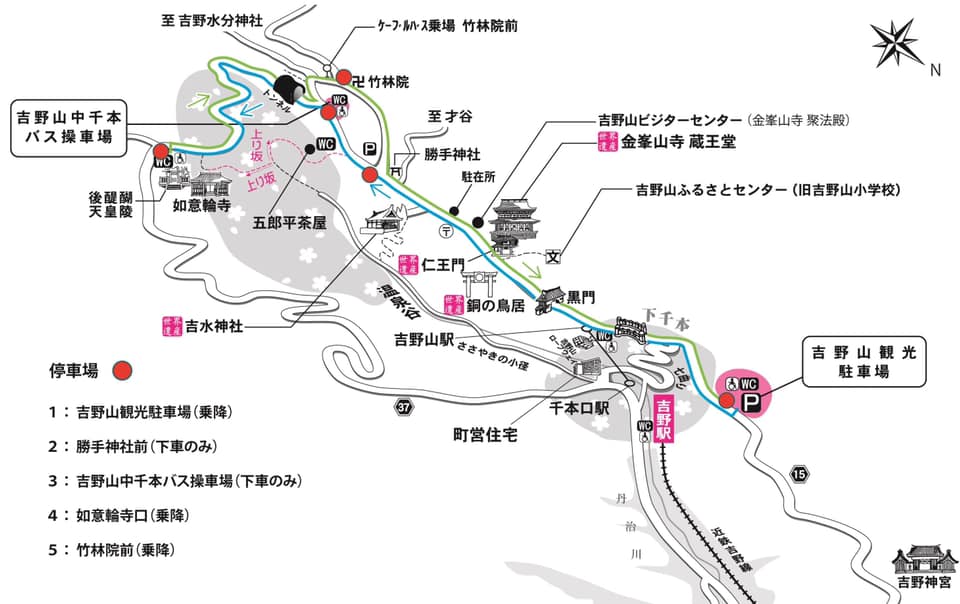 吉野熊野国立公園や世界遺産「紀伊山地の霊場と参詣道」に指定・登録されている奈良県吉野山は、日本でも有数のサクラ(シロヤマザクラ)の名所であるとともに、大峰奥駈道の入り口として数多くの史跡が残ったエリアですが、以前より、観桜期や紅葉期の自家用車乗入れ等による交通渋滞や利用者の満足度の低下、利用者及び地域住民の安全性の低下が指摘されていました。