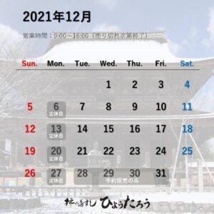 【営業日変更のお知らせ】2021年12月