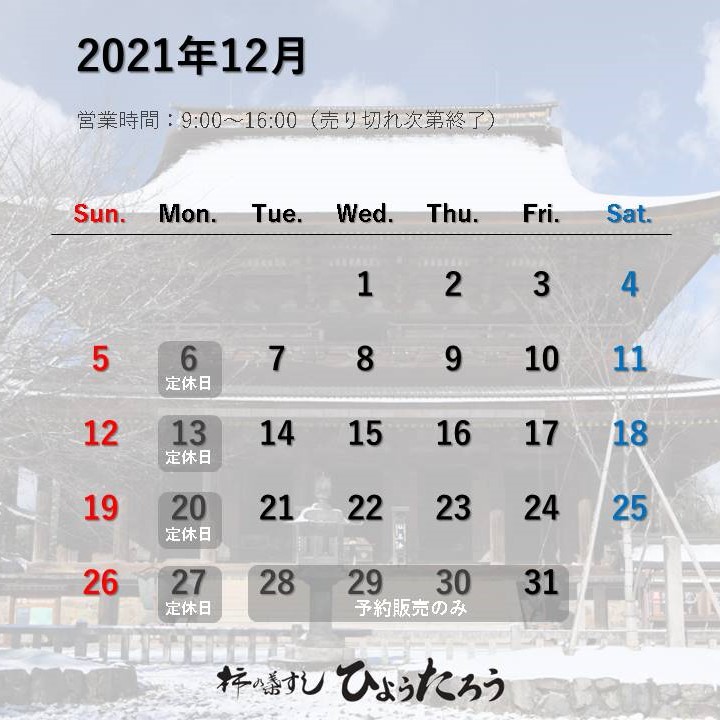 【営業日変更のお知らせ】2021年12月