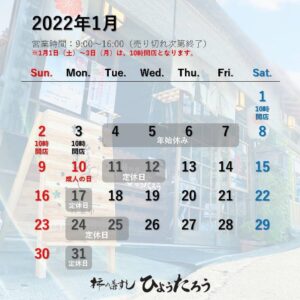 【営業日のお知らせ】2022年1月