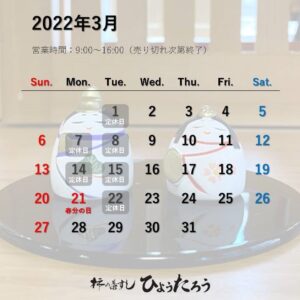 【営業日のお知らせ】2022年3月