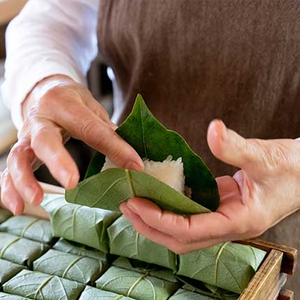 ひょうたろうはそんな山奥で、今日も柿の葉すしを作っています。