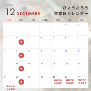 12月は少し変則的ですのでご来店やお取り寄せの際はお気をつけください。
