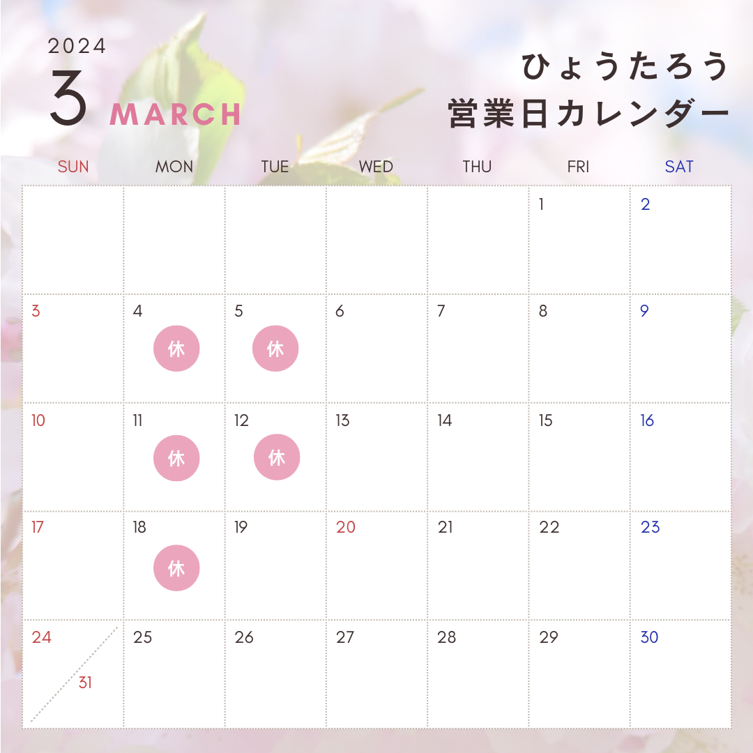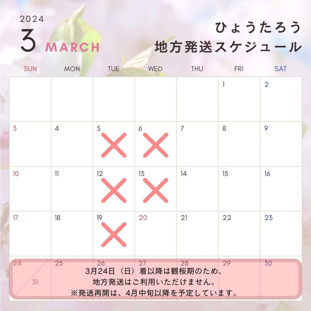 【お知らせ】2024年3月営業日、地方発送スケジュール
