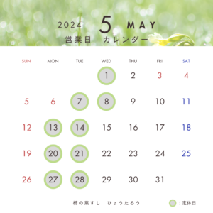 2024年5月の営業日をお知らせ致します。