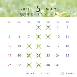 【お知らせ】2024年5月営業日、地方発送スケジュール