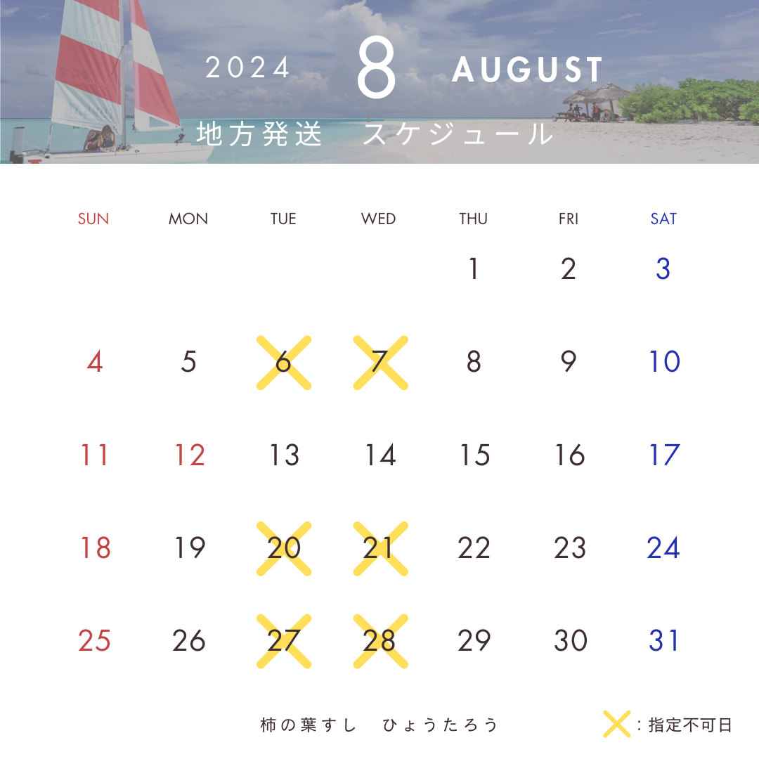 【お知らせ】2024年8月営業日、地方発送スケジュール