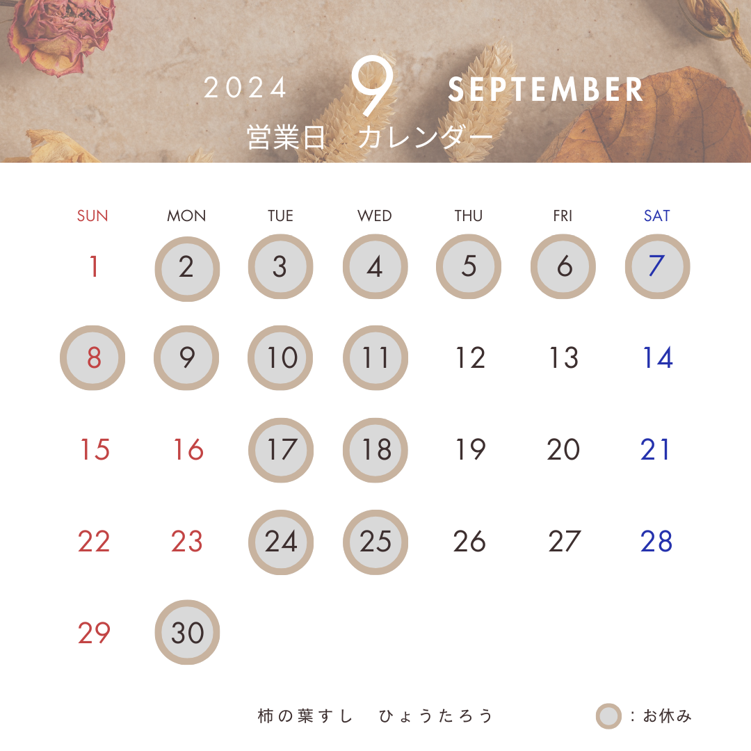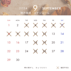 【お知らせ】2024年9月営業日、地方発送スケジュール