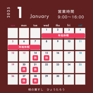 【お知らせ】2025年1月営業日、地方発送スケジュール