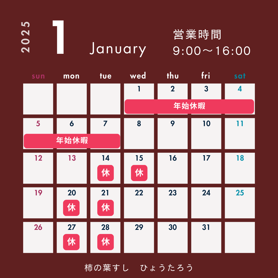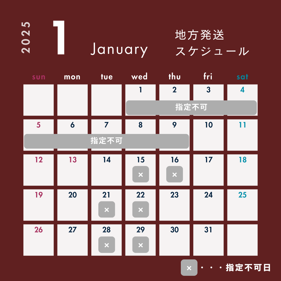 【お知らせ】2025年1月営業日、地方発送スケジュール