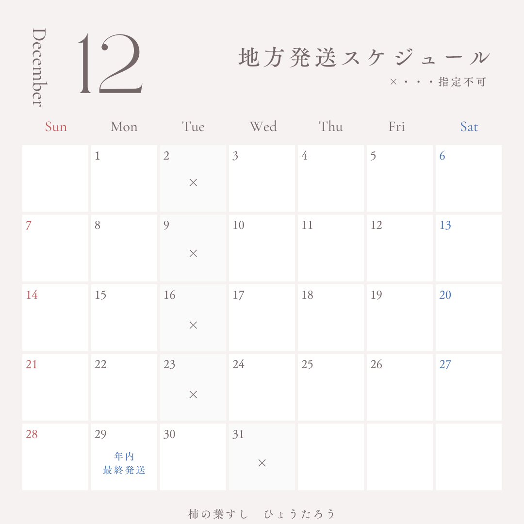 【お知らせ】2025年12月営業日、地方発送スケジュール