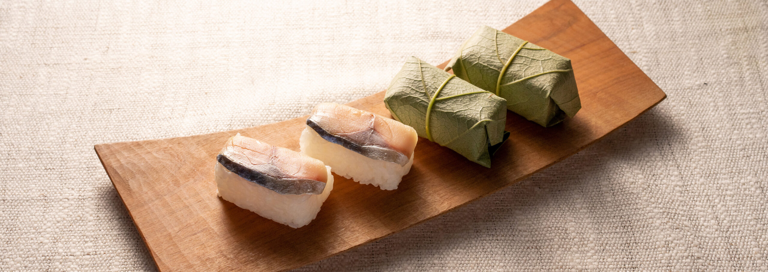 柿の葉すしの主な素材は、すし飯、鯖・鮭、柿の葉。非常にシンプルな構成です。